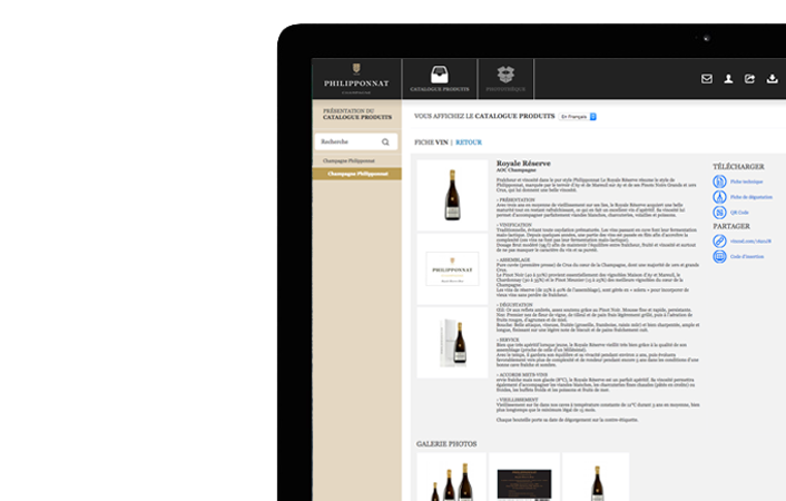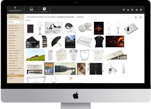 Fiches techniques, photos d'ambiance, packshots, étiquettes, revue de presse, articles publicitaires...Pour vous-même, vos commerciaux, vos clients professionnels ou partenaires d'affaires. Disposez d'un accès permanent à tous vos documents essentiels au marketing et à la vente. Que vous soyez chez vous, au bureau ou en déplacement, vous avez toujours la version la plus récente.